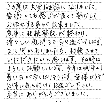 この度は我家の相続手続きに大変お世話になりありがとうございました。以前に講演... -
