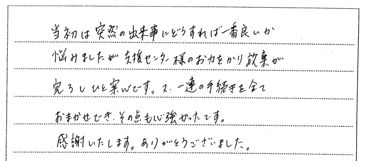 当初は突然の出来事にどうすれば一番良いか悩みましたが、支援センター様のお力を... -
