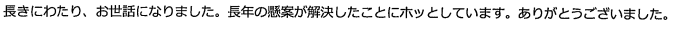 長きにわたり、お世話になりました。長年の懸案が解決したことにホッとしています... -