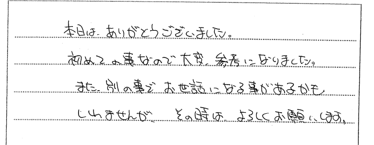 本日は、ありがとうございました。初めての事なので、大変参考になりました。また... -