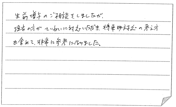 生前贈与のご相談をしましたが、担当の方がていねいに対応いただき将来の対応の考... -