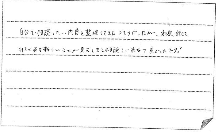 自分で相談したい内容を整理してきたつもりだったが、実際話してみると色々新しい... -