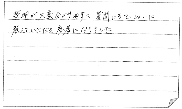 尼崎市:説明が分かりやすく質問もていねいに教えていただき参考になりました